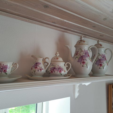 Stellet indeholde, kagefade i flere slags, sukke, flødekande kopper mv. inkl. diverse
