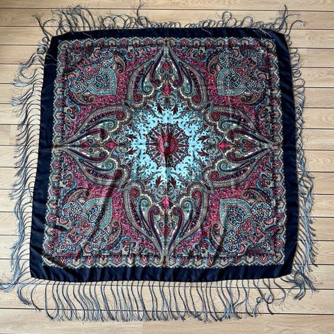 m4518 - 6303 ------ Rigtig fint gammel sjal ca 170 x 55 fra omkring 50èrne.