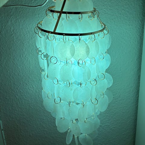 Skal lampe, Har denne virkelig smukke skal lampe med sorte skaller, som er sjældent set og som giver et virkelig roligt og afslappet lys.