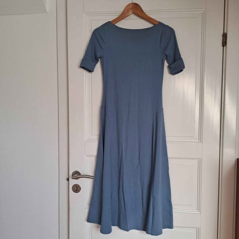 Lang blå midi-dress fra Ralph Lauren. Den har aldrig været brugt da jeg købte den til et bryllup. Men den var desværre for lang til mig ( jeg er 165cm) og havde ikke tid til at sende den til en skrædder for at korte den i længden. Den har kostet 2300 kr hos Boozt, men sælger den for 1000kr