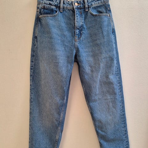 High waist ultra slim ultra stretchy jeans str S fra Zara. Noe bruksslitasje nederst på benene - se billeder.