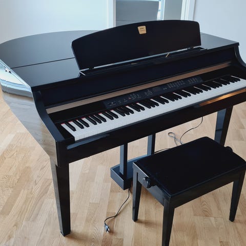 Sælger mit Kawai NV5, et premium hybrid-klaver, der kombinerer autentisk akustisk spillefornemmelse med moderne digital teknologi.