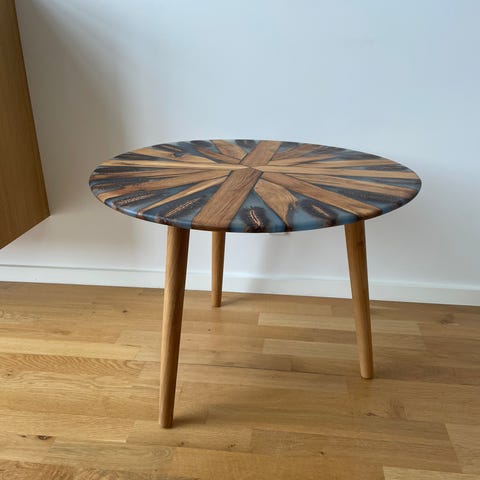 Unikt salonbord i brændt træ med epoxystøbning
