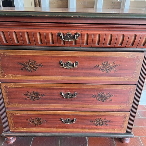 Gamle kommode med “hemmeligt rum” under bordplade