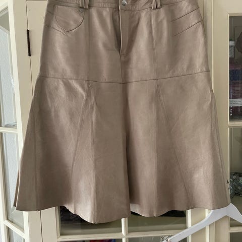 Sort nederdel i “læder look” fra Vero Moda, str L. Brugt 1 gang. Slids foran.