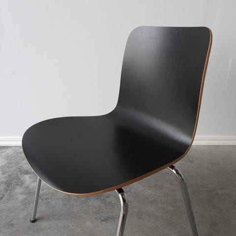 4 sorte stole med forkromet stel. Stolene er Martela Form 281ABC