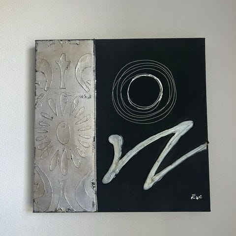 2 stk virkelig flotte abstrakt akryl malerier, købt hos galleri I Snejbjerg for mange år siden.