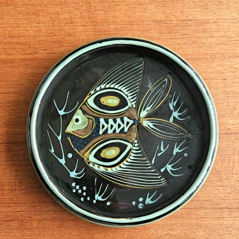 Turkisgrønt lille fad eller tallerken fra Kähler med lette brugstegn i form af lidt overfladeridser i lakeringen.