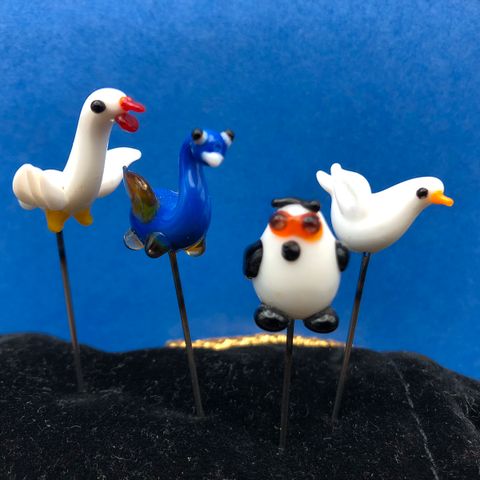 knappenåle, håndlavet glas, samlerobjekt, sytilbehør, unik gave, fugle figur, håndværk, dekoration, vintage stil