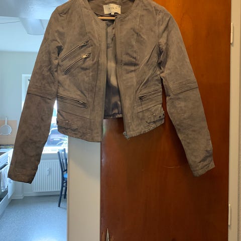 Ruskindsjakke, str. 42, Vila, Grøn, Ruskind, Ubrugt, Super flot dusty green
