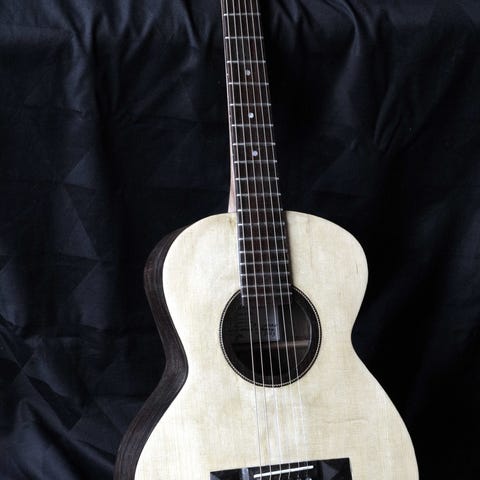 Blues, andet mærke Gibson L0 - replica, 1.423 kg ren Blues sound. Vægten er lille, men lyden er stor på denne håndbyggede 13 bånds Bluesguitar fra Oscar Guitars, DK 3140. Super respons og projektion. Bund og sider af Khaya mahogni, top af gran. Mahognihals, gribebrædt og bro af palisander, sadel og stol af ben. Fishman Neo D single coil passiv pickup installeret. Kommer med Elixir Nanoweb phosphor bronze 10-47 strenge. Sendes fragtfrit i DK. Kan testes på adr.