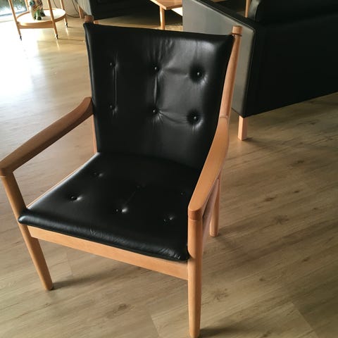 Hans J. Wegner, Armstol. Hans J. Wegner: armstol. Udført hos Johannes Hansen. Nypolstrede med nyt skum og “Vecona” Anilin læder. Fremstå meget velholdte.