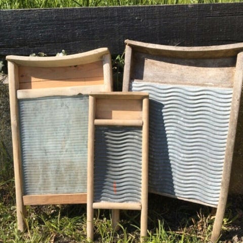 Meget lille vaskebræt Bredde 19cm Højde 40cm kan bruges til den lille klatvask, eller vil gøre sig godt som dekoration. Det er gammelt, brugt og med tidens patina.