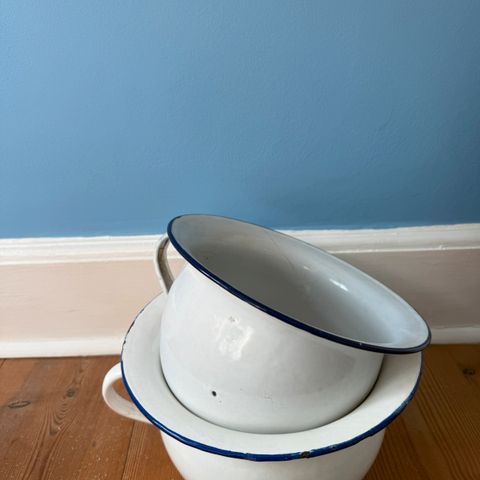 Potten er emaljeret og 18 cm i diameter og 10 cm høj.