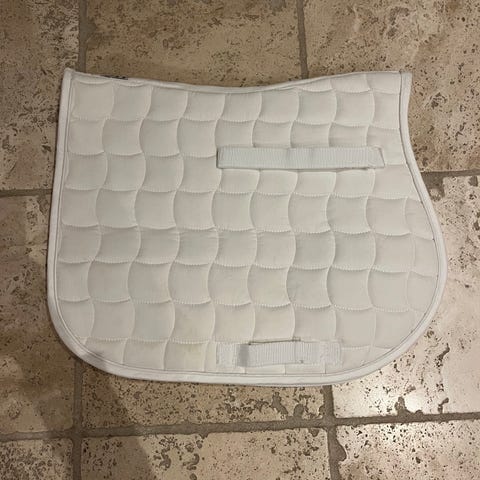 Flot grønt dressur saddelunderlag med guld glimmer mærke. Str 17’’ (se sidste billede for mål for 17’’). Nypris 599 kr.