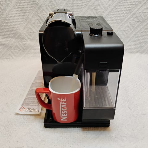 Til den hurtige morgenkaffe eller fuldfede espresso latte. Stor mælkebeholder. Også perfekt til hjemmekontoret 0g/eller kræsne gæster. Nem at bruge. Velholdt, lækker og fuldstændigt rengjort i alle hjørner og kanter. Afkalket efter bogen. Virker perfekt. Kom forbi og smag på den.