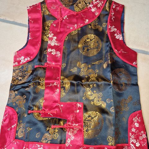 Aldrig brugt kinadragt, hjembragt fra Kina, for 20år siden. Har ligget i originaemballage siden.