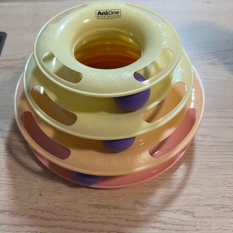 En spændende og sjov sisal bold, lidt som en håndbold (Ø 12 cm) til katte - bare med huller i samt noget at fange