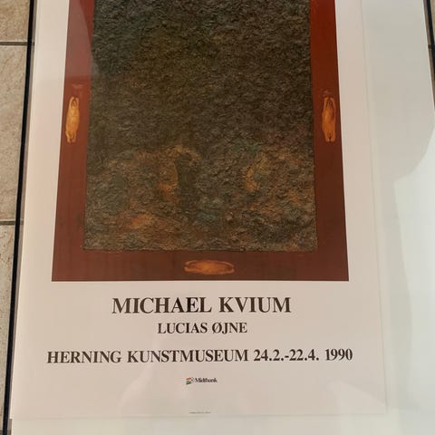Plakat af Michael Kvium indrammet god stand bredde 53 cm længde 73cm