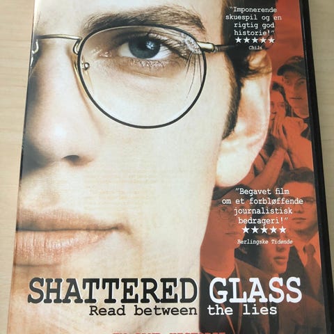 DVD med filmen Shattered Glass, der handler om en sand historie om en journalist og hans karriere.