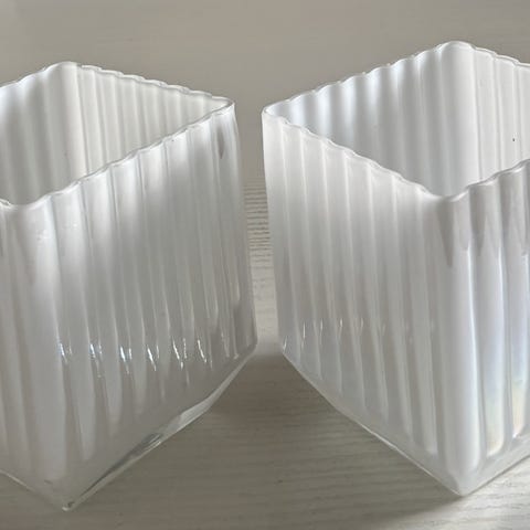 Glas, Urtepotteskjulere, 2 Stk, KUN 25,- Kan sendes/ Evt. Leveres 10 Cm x 10 Cm x 10 Cm.
