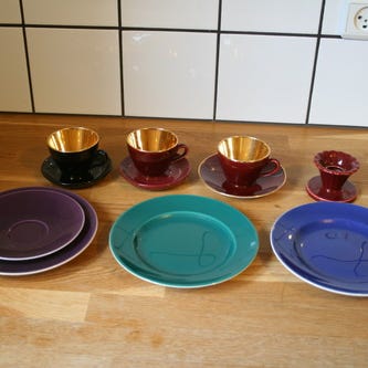 Lilla Confetti kop og underkop fra Almunina med guld på kanter og inderside.