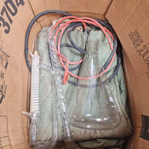 Laboratorie køler af borsillikat glas. Længde 51 cm, 41 mm Ø diameter, indvendig tilslutning 28 mm Ø.
