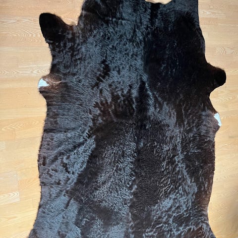 koskind opbevaring af diverse, koskind, koskindskurv med håndtag. top stand. beskedent brugt. Fra Bolia. sort og hvid. H inkl. håndtag 47cm omkreds 128cm