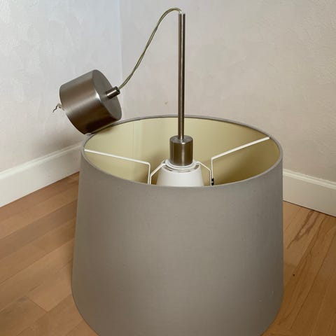 Flot lampeskærm i kraftig kvalitet. Der er noget groft stof udenpå. Giver et virkelig flot diffuset er lys.