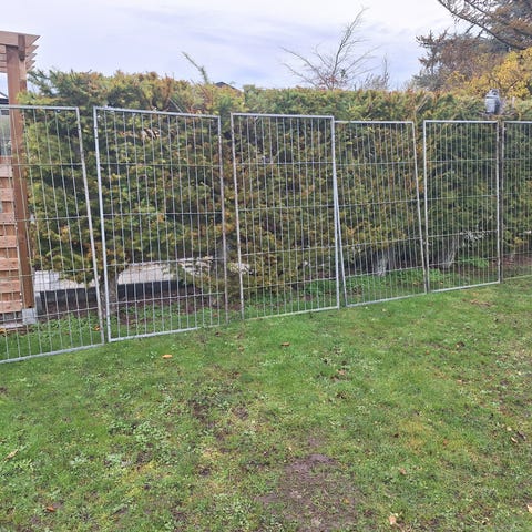 3 elementer i kraftigt galvaniseret trådnet til hundegård, der er i meget fin stand, sælges.