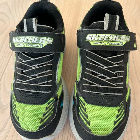Skoene lades op og så kan sålen lyse og blinke i mange forskellige kombinationer. Ledning med dobbelt stik til opladning medfølger. De er brugt, men ikke slidt - puds dem og de er klar til misundelige blikke.