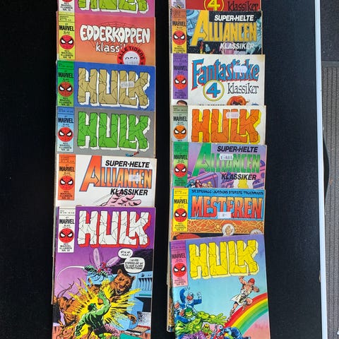 Her sælges en stak af de tykke sort/hvide marvelhæfter fra 80'erne