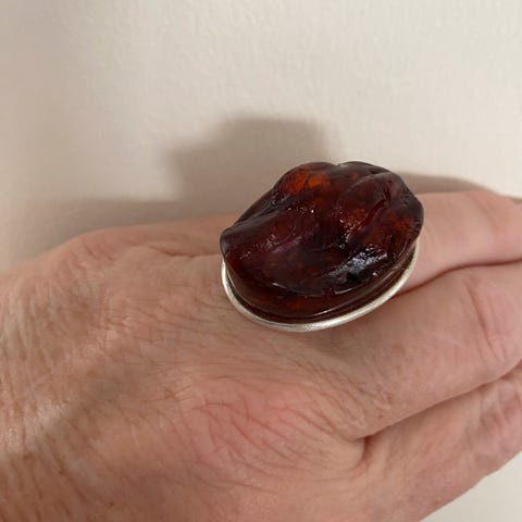 En ravring til den store / massive side. Sterling sølv. 2 stempler.Sølvring med rav.massive side. Sterling sølv.