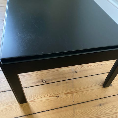 Sort sofabord sort kraftig glasplade, jern stel mærke leolux mål 90x90 højde 35