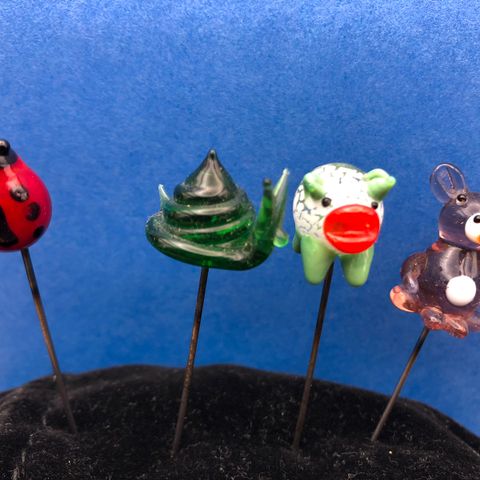 Sælger disse smukke, håndlavede knappenåle med glasfigurer. Perfekte til samlere, sy-entusiaster eller som en unik gave.