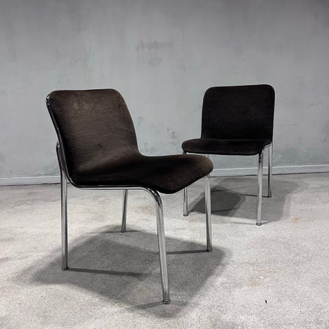 Designer stole af Okamura og Marquardsen. Produceret hos Getama. Har en del brugsspor / slid og har stået lidt fugtigt, så en af samlingerne skal limes, se billede.