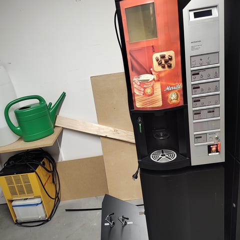 Wittenborg FB5100 kaffemaskine med møntindkast. Med tilhørende skab nedenunder som passer til maskinen.