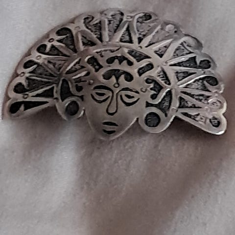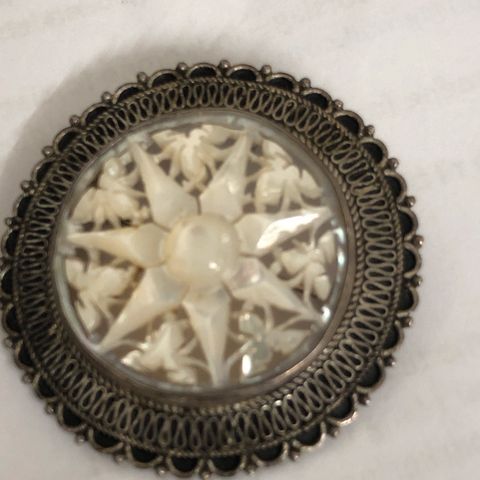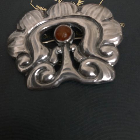 Vintage sølvbroche med flot design og ny nål så ingen stempel 42x25mm