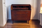 Sekretæren har tre rummelige skuffer, hvoraf den ene kan lukkes, en aflåselig skydeklap.