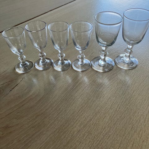 9 stk gamle Christian den 8. rødvinsglas halvfacet