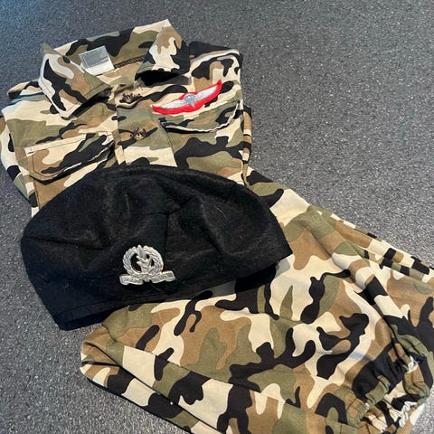 Militær udklædningstøj passer til et barn på ca. 11 år.