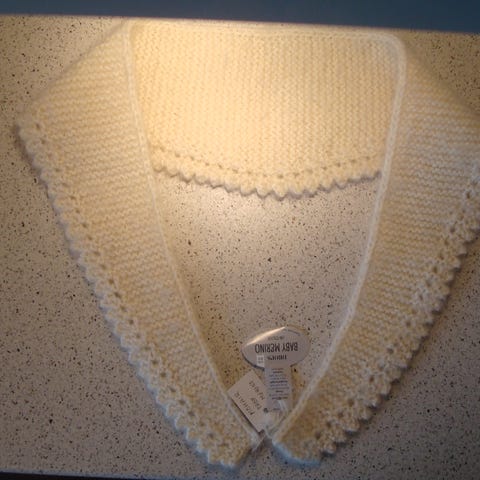 Retstrikket lysblå blondetørklæde.
