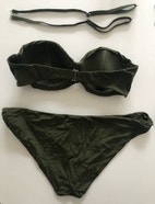 Khaki farvet balkonette bikini overdel og trusser med snoning i siden - se foto.