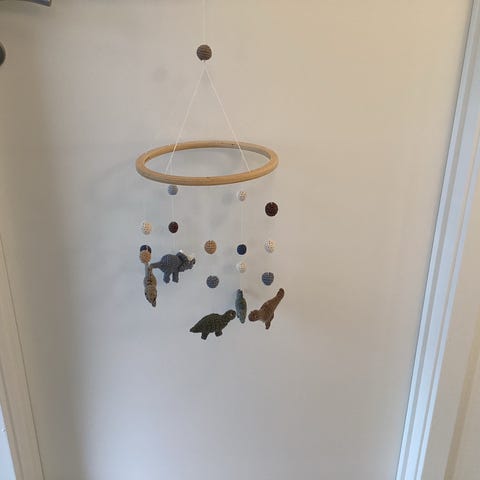 Skøn luftballon uro med en elefant og en løve, som også kan bruges løs andre steder fx. i sengen på puslebrættet mv. 70 cm høj. Som ny, da den kun har været brugt som ophæng i en kort periode. Skønne glade farver.