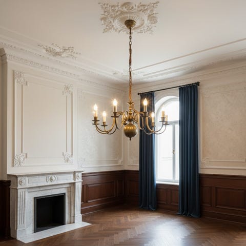 Gammel (antik??, mindst 80 år gl.) messinglysekrone med 5 arme, messingkæde og-loftroset sælges længde ialt ca 62 cm, heraf ca 30 cm 4-leddet kæde gl stofledning skal udskiftes