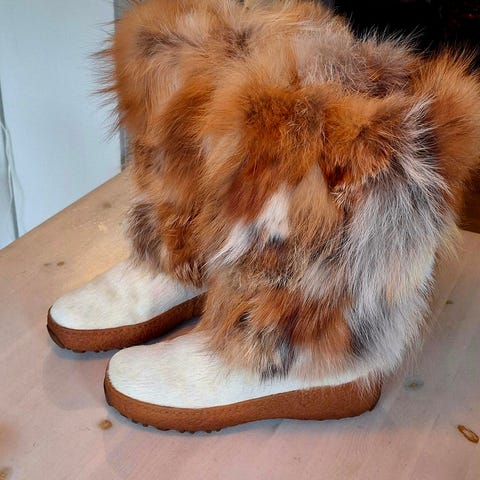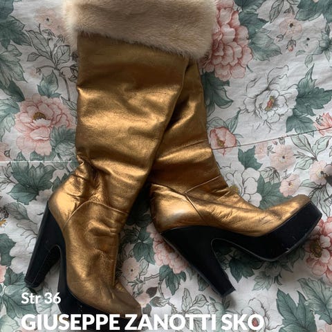 Ermanno Scervino boots i læder, ruskind og fåreuld med fine små krystaller langs hele sålen. Brugt 2-3 gange, har lidt brugsspor på snuden, ellers ingen fejl!