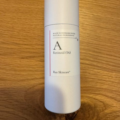 Raz Skincare A-retinoid 5% serum er behjælpelig til at gendanne hudens struktur. Produktet indeholder 5% a-retinoid, som har vist sig som den mest effektive "Vitamin A", til opløsningen af tilstoppede porer, behandling af solskader, behandling af uren hud og alderdomstegn.