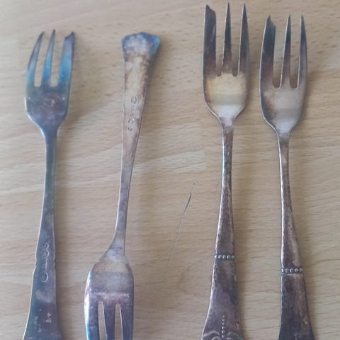10 STK. KAGEGAFLER I DIAMANT ,SØLVPLET ! DE MÅLER 15 CM I LÆNGDEN !