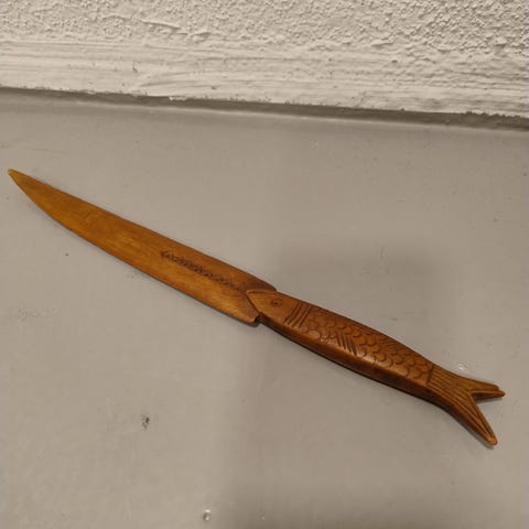 Gammel brevkniv lavet med håndtag af jern som en bjælke