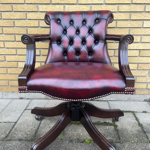 Kontorstol, Engelsk, Chesterfield kontor stol, midt 1900 tallet, pæn stand, en løs knap i sædet.. Sæde højde 48 cm, H. 99 cm, B. 70 cm. D. 72 cm.